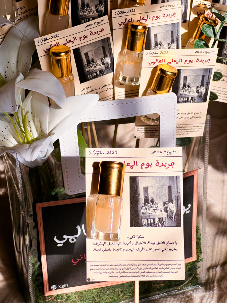 عبرّي عن امتنانك لمعلماتك بتنسيق سلة ورد انيقه بالاضافه الى جريدة برساله شكر وتولة مسك للذكرى✨..