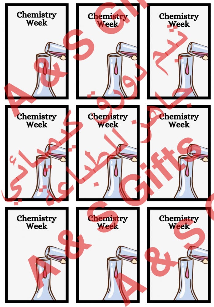 ملف يحتوي على تصميم خاص لاسبوع الكيمياء بمقاس مناسب لتوزيعات (تولات ،حلق، شوكلاته..والمنتجات الصغيره) لطباعته بابداعك الشخصي🧑🏻🏫👩🏼🏫❤️
